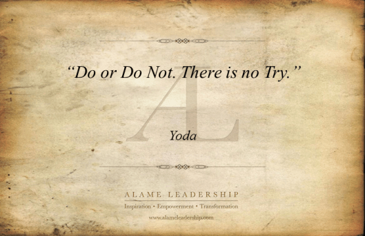 AL Inspiring Quote on “Doing” instead of “Trying” 17 Tuesday Jul 2012 Posted by Alame Leadership in AL Inspiration Quotes ≈ Leave a comment Share this: Click to share on X (Opens in new window) X Click to share on Facebook (Opens in new window) Facebook Click to email a link to a friend (Opens in new window) Email Click to print (Opens in new window) Print Like Loading... Related