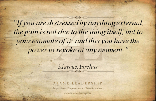 “If you are distressed by anything external, the pain is not due to the thing itself, but to your estimate of it; and this you have the power to revoke at any moment.” Marcus Aurelius