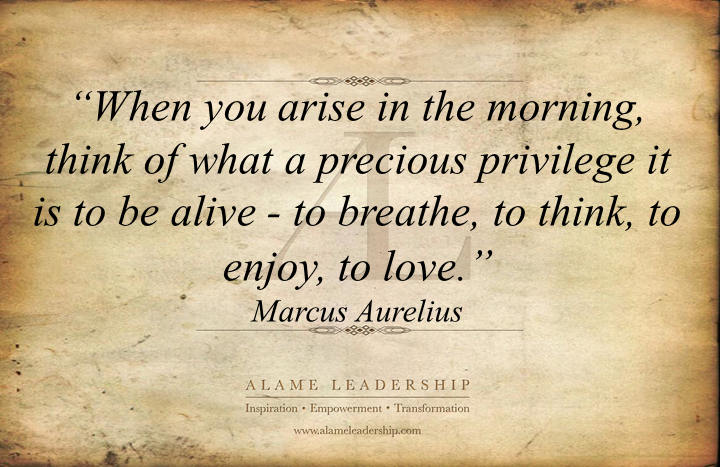 Image Marcus Aurelius’ Week: AL Inspiring Quote on Being Grateful to Be Alive 13 Monday May 2013 Posted by Alame Leadership in AL Inspiration Quotes ≈ Leave a comment Share this: Click to share on X (Opens in new window) X Click to share on Facebook (Opens in new window) Facebook Click to email a link to a friend (Opens in new window) Email Click to print (Opens in new window) Print Like Loading... Related