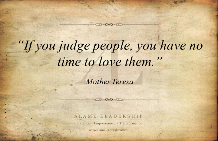 Image Mother Teresa’s Week: AL Inspiring Quote on Loving Vs Judging 02 Monday Dec 2013 Posted by Alame Leadership in AL Inspiration Quotes ≈ Leave a comment Share this: Click to share on X (Opens in new window) X Click to share on Facebook (Opens in new window) Facebook Click to email a link to a friend (Opens in new window) Email Click to print (Opens in new window) Print Like Loading... Related