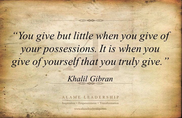 “You give but little when you give of your possessions. It is when you give of yourself that you truly give.” Khalil Gibran